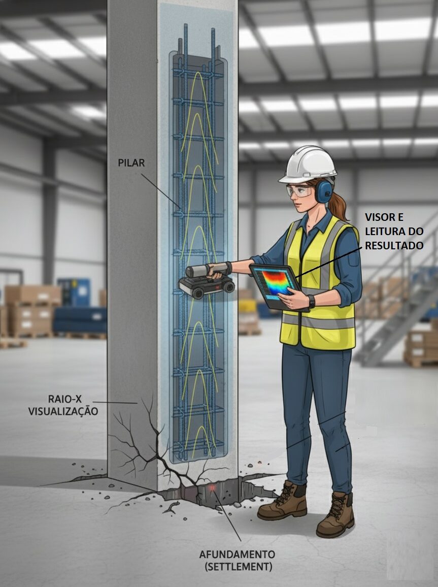Utilizamos técnicas visuais e geofísica para complementar a análise, garantindo precisão e confiabilidade nos resultados. Todos os dados são organizados em relatórios detalhados, com desenhos ilustrativos, plantas e representações gráficas do resultado, desta forma nosso trabalho auxilia engenheiros e construtores a tomar decisões fundamentadas sobre manutenção, reforço ou recuperação de estruturas existentes.