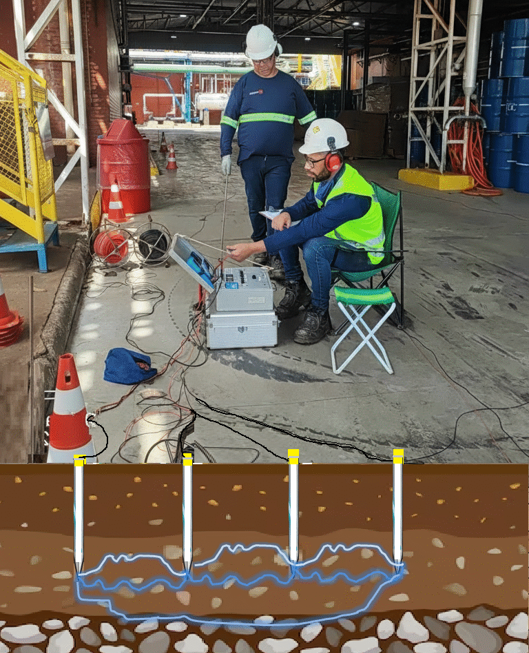 Por meio da injeção controlada de corrente elétrica e da medição do potencial entre eletrodos, é possível mapear variações de resistividade que revelam diferentes tipos de materiais, condições geológicas e presença de água subterrânea — informações cruciais para projetos de fundações, obras civis, barragens e rodovias.
